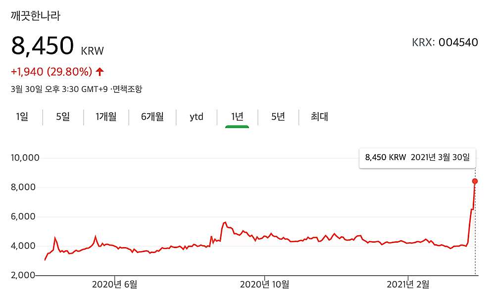 깨끗한나라 주식 - 기업개요, 가격추이, 기업가치