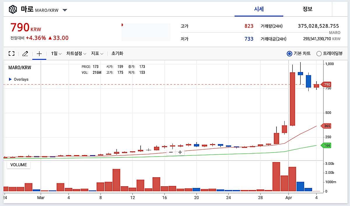 그 외에 두나무가 뉴욕증권거래소에 상장할 수도 있다는 것과 업비트가 마로 코인을 팔지 않고 있다는 것이 호재로 작용한 듯 하다.