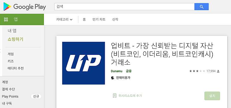 ( 참조: 구글 플레이스토어 업비트 바로 가기 )