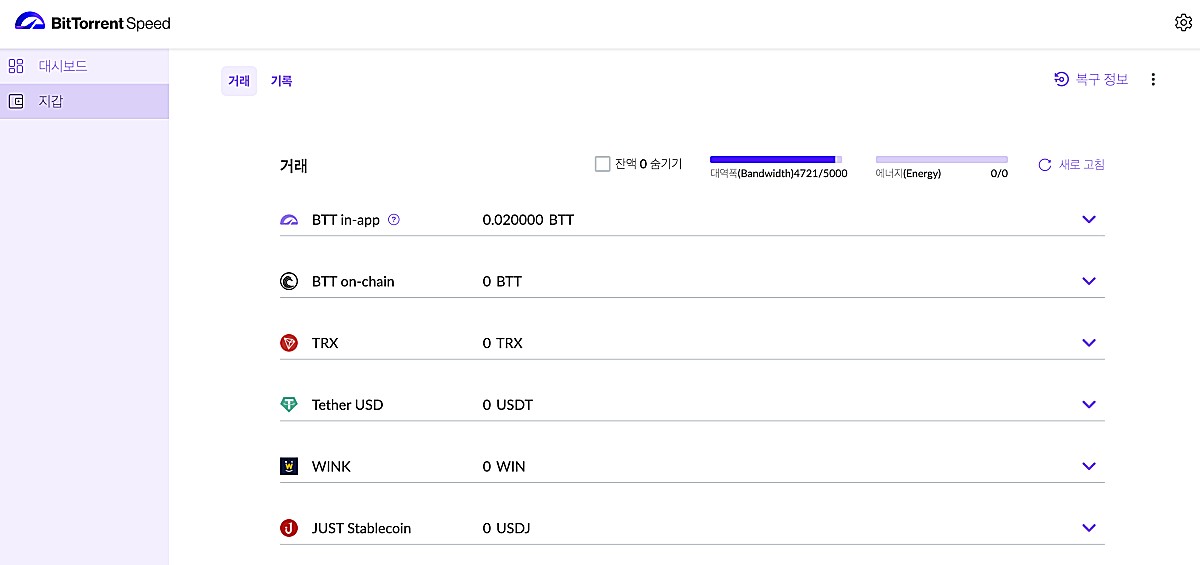 채굴을 하기 위해 BitTorrent Web을 다운로드 받고, 월렛을 만들어 보았다. 월렛은 BITTORRENT SPEED 메뉴를 클릭하면, 쉽게 만들 수 있다.