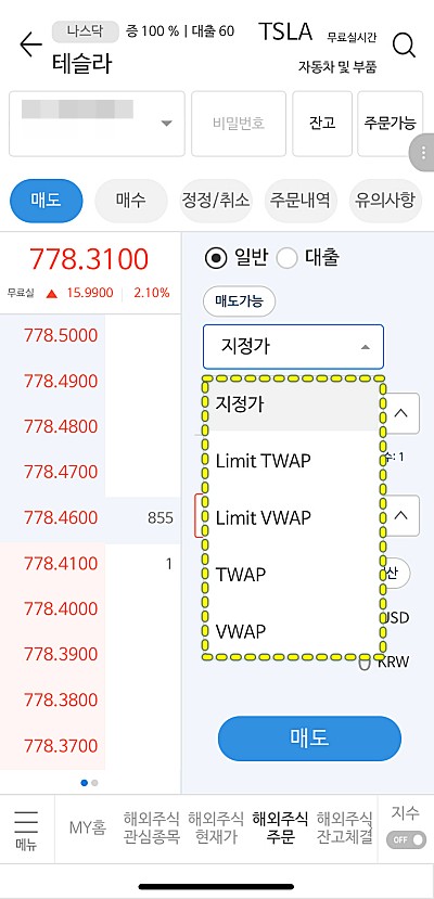 VWAP(Volume Weighted Average Price)의 약자로 거래량을 기준으로 나누어 체결하는 주문방법이다. 수량분할주문이라고도 부른다. 거래가 많은 가격대에는 많이, 적은 가격대에는 적게 체결된다.