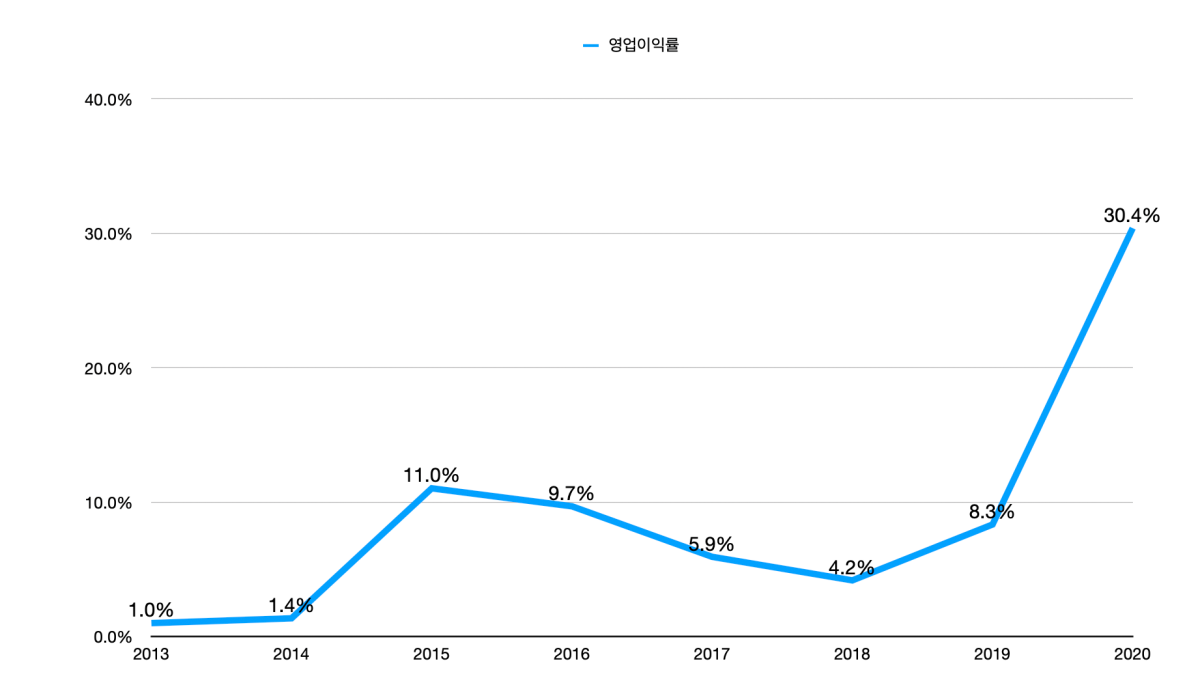 년도별 매출액, 영업이익, 당기순이익, 영업이익률 살펴보면 아래와 같다.