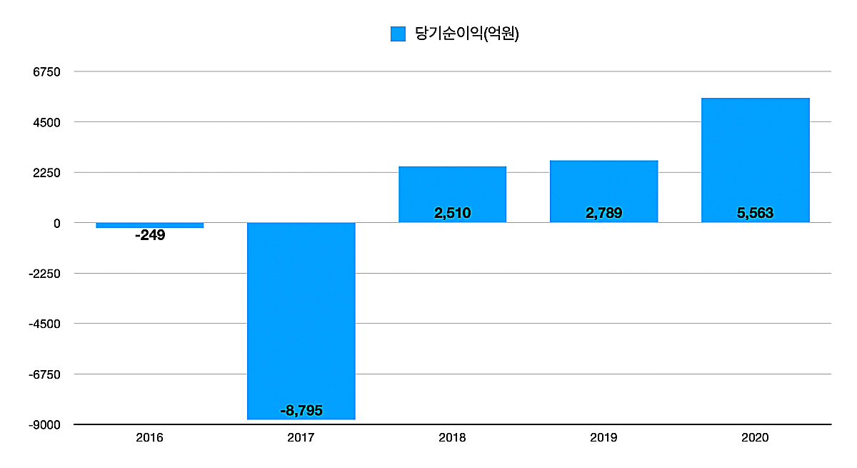 20년에는 5562억원의 당기순이익을 달성했다.