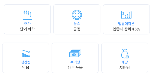 딥서치에서는 총 6개의 항목으로 주식을 나타내준다. 현재 내용은 아래와 같다.