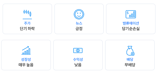 딥서치에서는 총 6개의 항목으로 상장기업의 상태를 나타내준다.