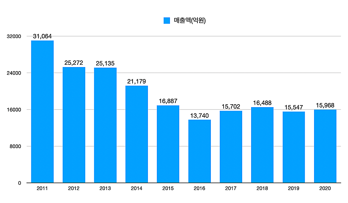 대한전선의 지난 10년간 매출액과 영업이익 추이를 보면 이같은 변화를 더 쉽게 느낄 수 있다. 매출액은 줄어들었지만, 영업이익과 당기순이익은 오히려 증가하였다. 기업체질개선을 위한 노력이 엿보이며, 아무래도 초고압케이블 같은 고부가가치 제품의 판매가 늘어나지는 않았나 예상해본다. 하지만, 확인하지는 못했다.
