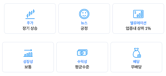 딥서치에서는 해당 기업을 총 6개의 키워드로 간략하게 먼저 보여준다. 대한전선의 경우는 아래와 같다.