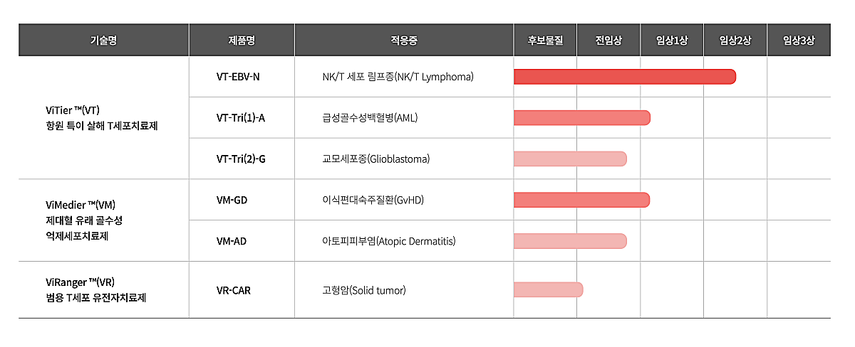 현재 개발 중인 치료제 중에 가장 가시화가 빠를 것으로 보이는 것은 NK/T세포 림프종 치료제인 'VT-EBV-N'이다. NK/T세포 림프종은 희귀난치성 질환으로 뚜렷한 치료방법이 없고 재발률도 높다. 바이티어 플랫폼을 기반으로 한 치료제가 성공적으로 출시된다면 그 효과를 굉장히 높을 것으로 기대된다.