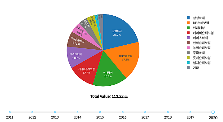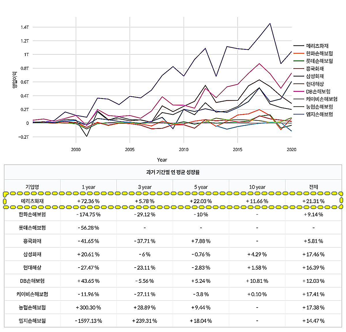 매출은 삼성화재, DB손해보험, 현대해상 순이었다. 삼성화재가 1등일 것이라고 생각은 했지만, DB손해보험과 현대해상의 MS도 꽤 높은 수준이었다.
