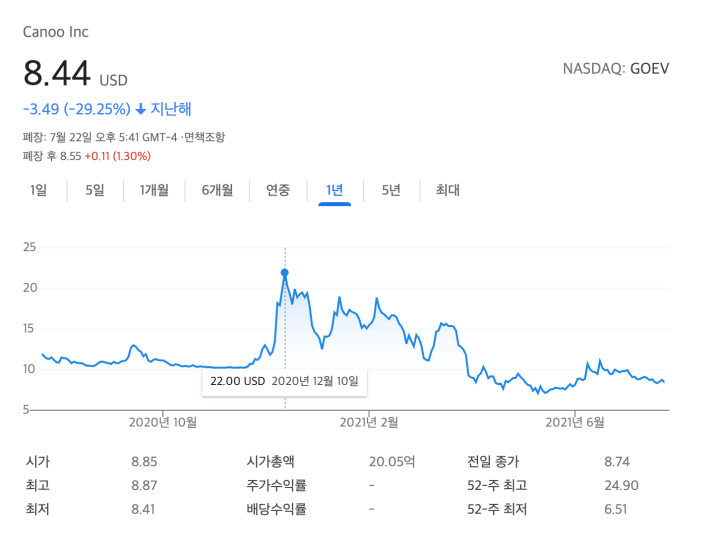 카누(Canoo) 주식 기업내용과 가격, 기업가치는?