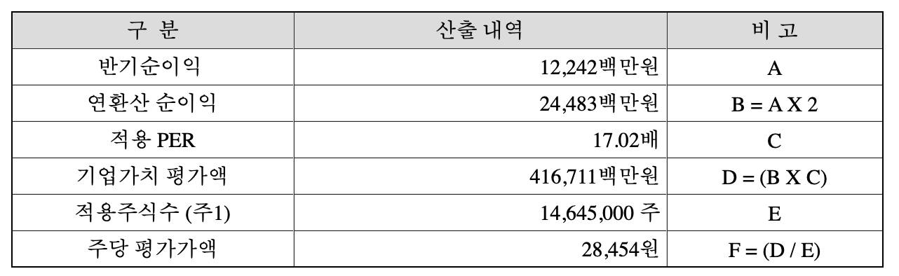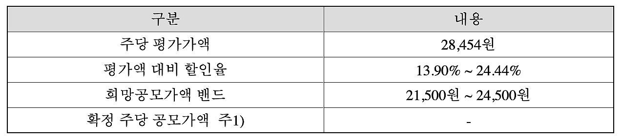 할인율을 적용한 희망공모가액은 아래와 같다.