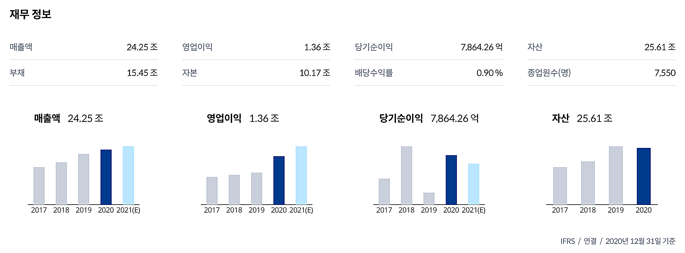 최근에 실적이 좋아서 그런지, PER・EPS・PBR 등의 수치는 좋은 편이다. 배당금도 받을 수 있는데, 20년 12월에는 주당 4000원의 배당금을 지급했다.