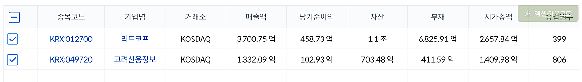 리드코프가 당기순이익이 고려신용정보의 4배가 됨에도 불구하고, 시가총액은 2배가 안 된다. 순이익이나 자산 등을 비교했을 때는 리드코프의 주가 수준이 훨씬 저렴해 보인다.