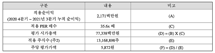 여기에 오토앤의 순이익을 적용하면 주당 평가금액을 구할 수 있다.