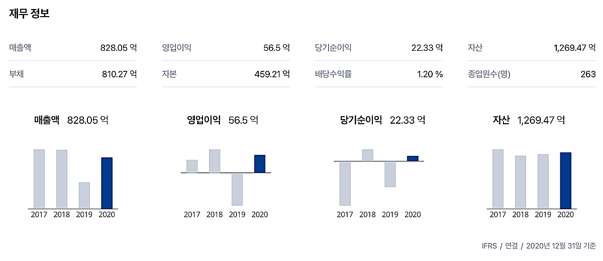 재무구조는 좋은 편은 아니다. 20년에 당기순이익이 흑자전환되었다. 다만 2021년에 매출이 성장하고 있어, 20년보다는 좋은 성과가 나오지 않을까 기대해본다.
