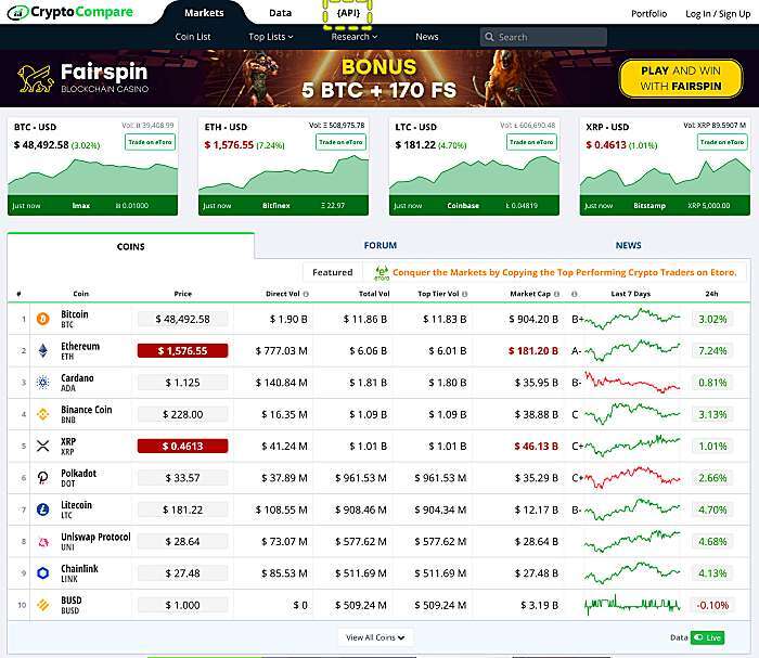 ( 참조: https://pypi.org/project/cryptocompare/ )
