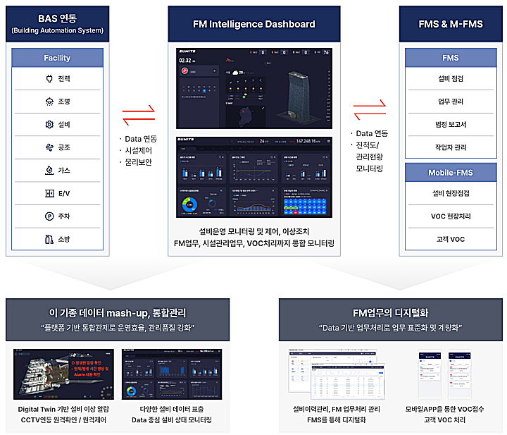 1) 융합보안 플랫폼을 기반으로 한 컨설팅, 솔루션 구축/운영/관제 등을 산업안전보안,시설관리에 적용하는 통합서비스.