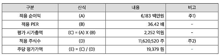 평균PER에 가온칩스 2021년 당기순이익을 적용해 주당 평가금액 19,379원이 나왔다.