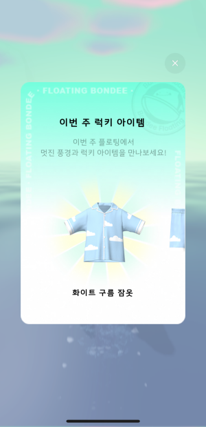 본디 플로팅은 배를 타고 나가서 친구가 아닌 다른 사람과 메시지를 보내고 답변을 받을 수 있는 기능입니다. 그리고 플로팅을 통해서 럭키 아이템을 얻을 수 있습니다. 본디 방 꾸미기 하려면 아이템이 필요한데요. 럭키 아이템은 플로팅을 통해서만 얻을 수 있습니다.