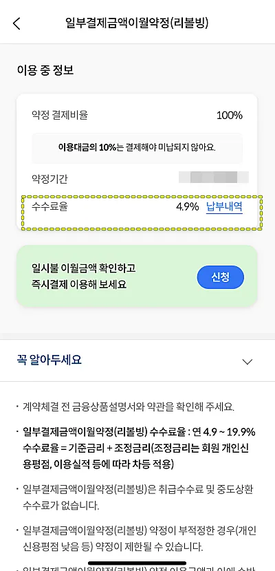 그래서 약정결제비율을 100%로 이용하면, 연체 방지 목적으로 사용할 수 있습니다. 롯데카드 리볼빙 서비스 신청 방법에 대한 자세한 내용은 아래 포스팅을 참고하시기 바랍니다.
