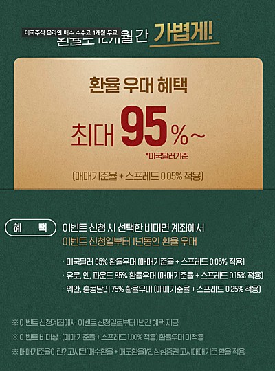 다른 증권사와 수수료 수준은 동일하다. 하지만, 삼성증권 해외주식 프로모션의 내용이 굉장히 좋다. 이 정도면 거의 최강이 아닐까 싶다.