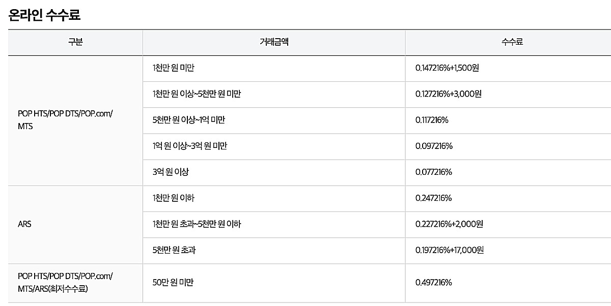 수수료가 무료라고 하더라도, 유관기관 제비용은 부과된다. 이는 다른 증권사도 모두 동일하다. 하지만, 수수료율이 굉장히 낮다. 주식[거래소/코스닥/코넥스]: 0.0036396%, ETF/ETN: 0.0042087%, K-OTC: 0.0909187%이다.