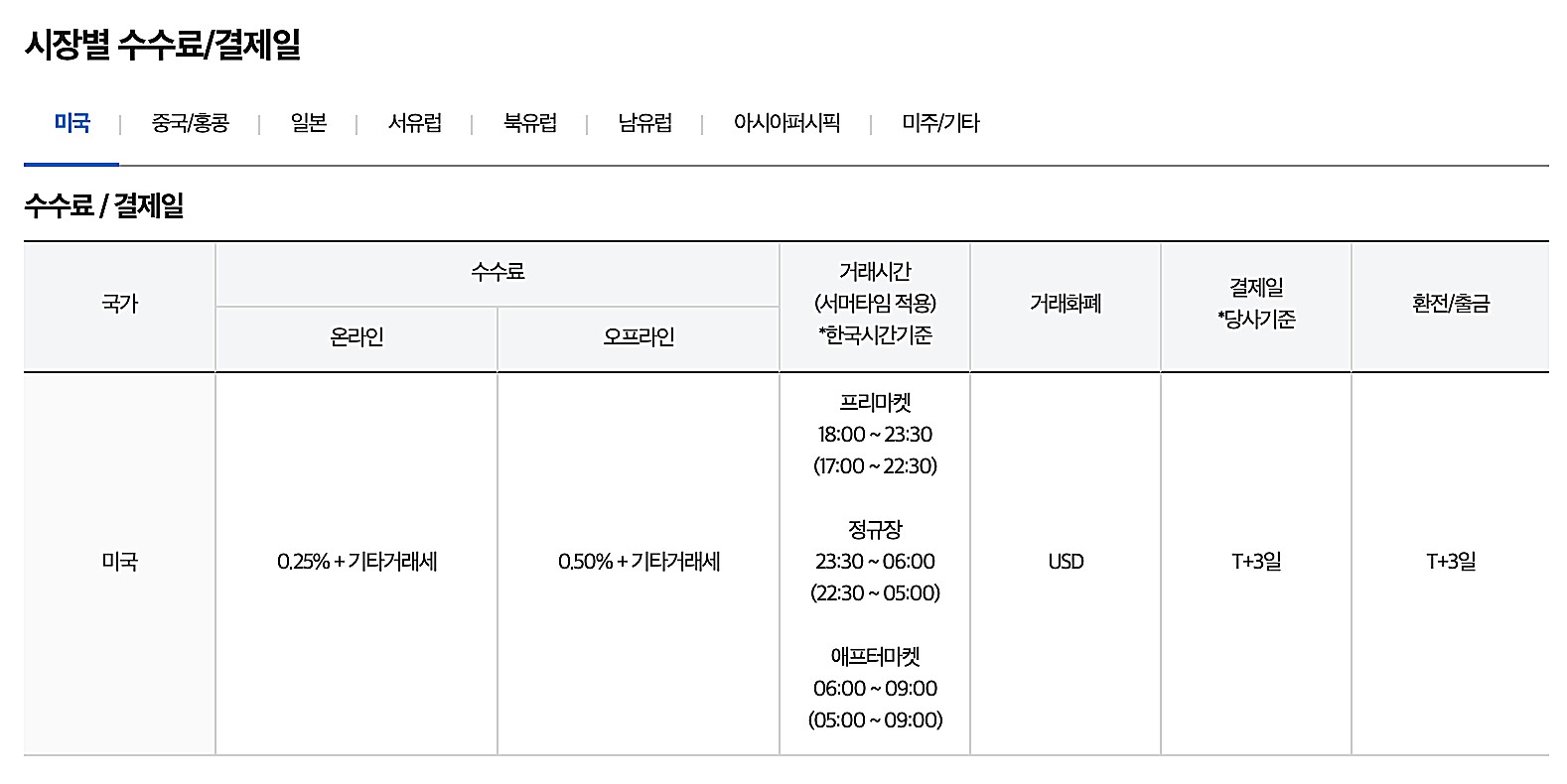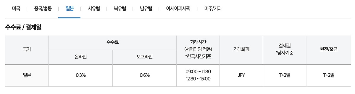 요즘은 해외주식투자도 많이 하므로, 해외주식 수수료도 알아보았다. 거래할 수 있는 국가는 많지만, 주요국가인 미국/중국/일본만 알아보았다. 다른 국가의 해외주식 수수료가 궁금하다면, 홈페이지 메뉴의 [트레이딩]-[해외주식]-[해외주식 거래안내]-[해외주식 거래절차 안내] - [수수료]를 확인하기 바란다.