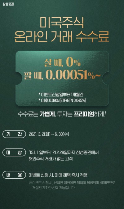 ( 참조: 삼성증권 평생수수료 면제 이벤트 페이지 바로가기 )
