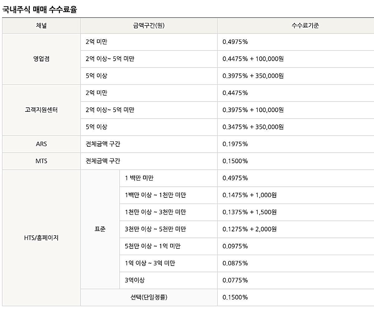 영업점이나 고객센터를 이용하는 것이 수수료율이 가장 높다. 거래금액의 약 0.5%를 수수료로 지불해야 한다.