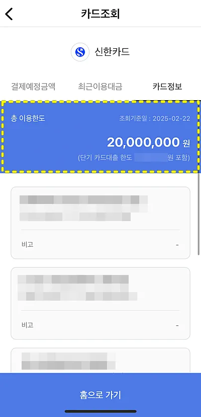 가지고 있는 모든 신용카드 한도확인하는 방법은?